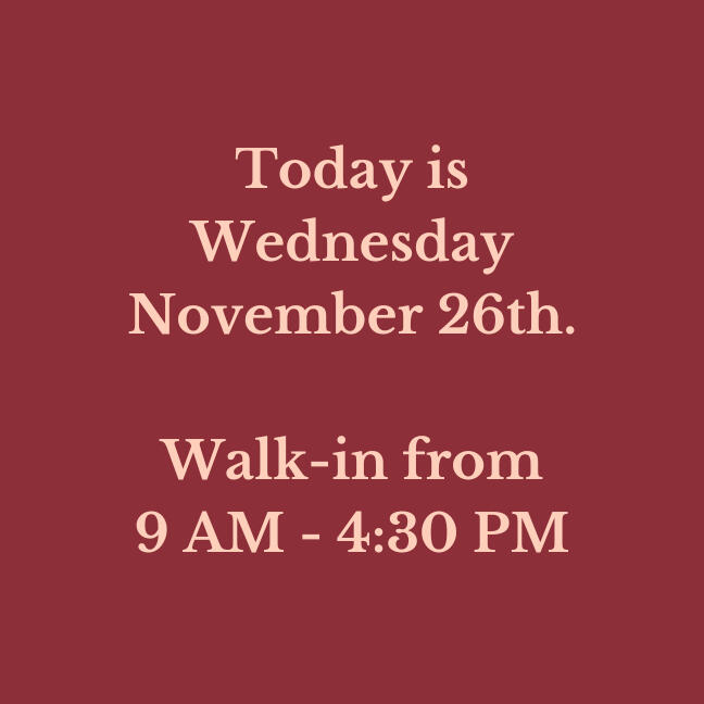 We update our walk-in hours daily. If you are driving a distance, please check to make sure!