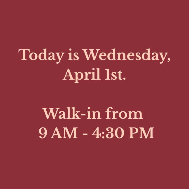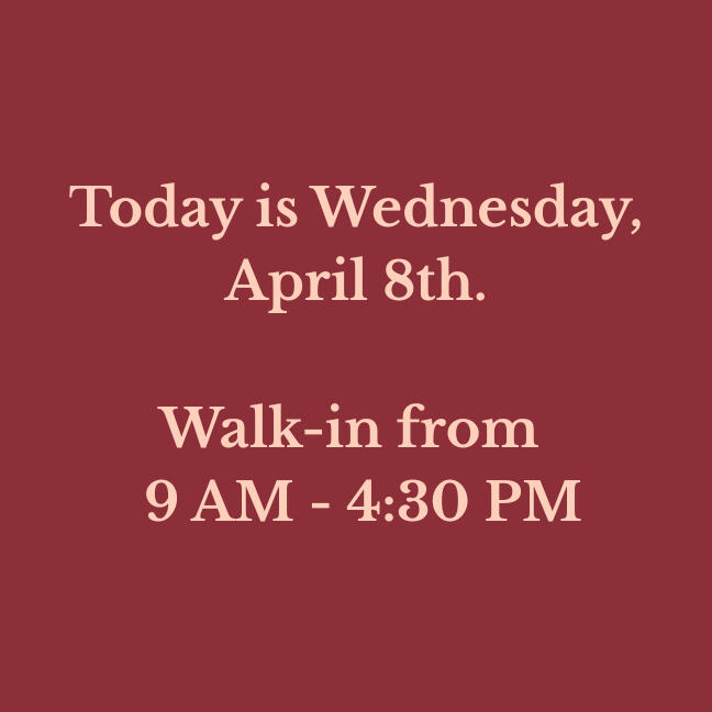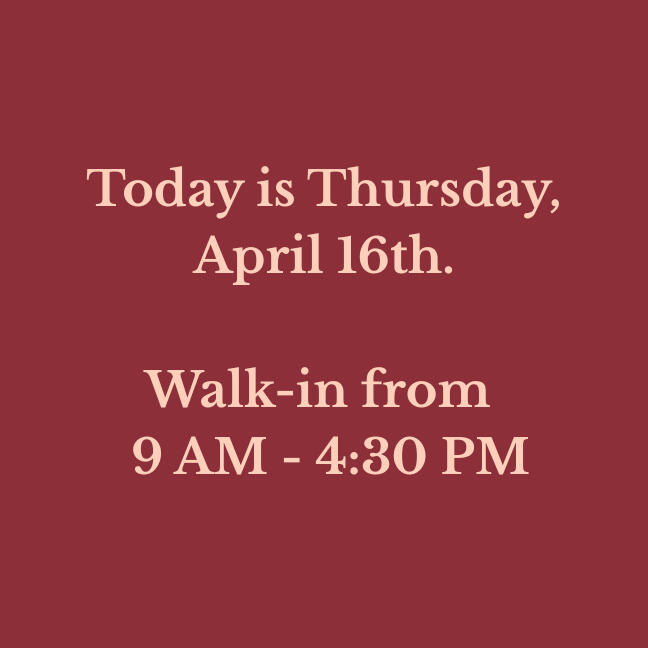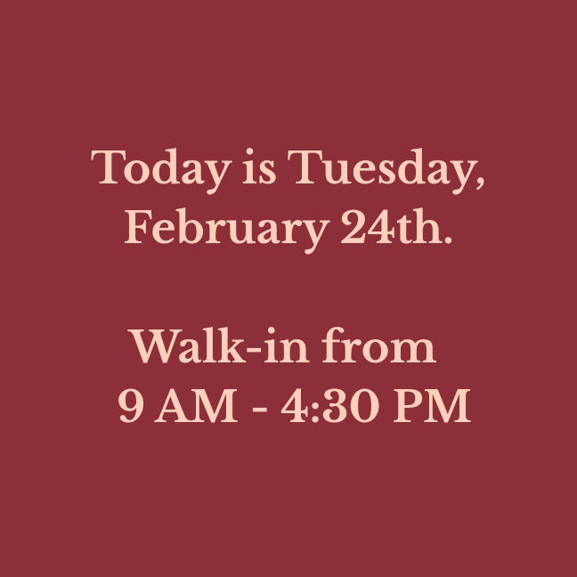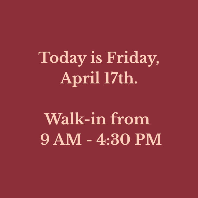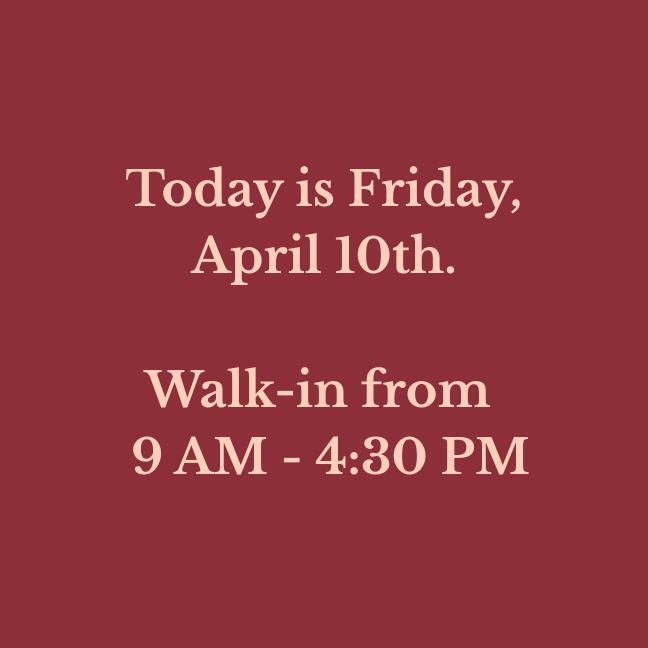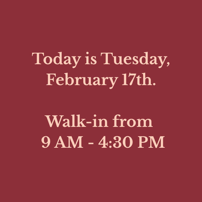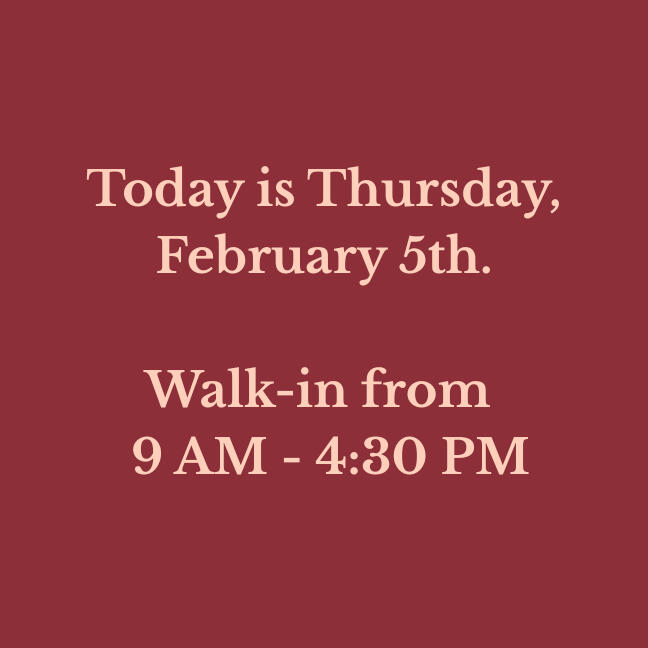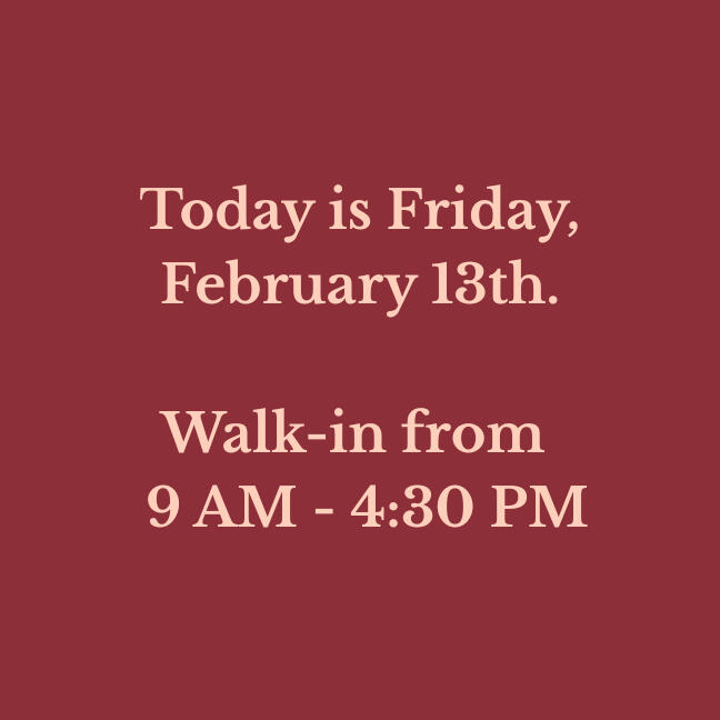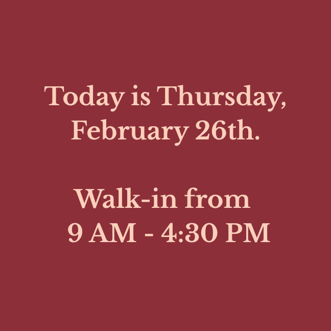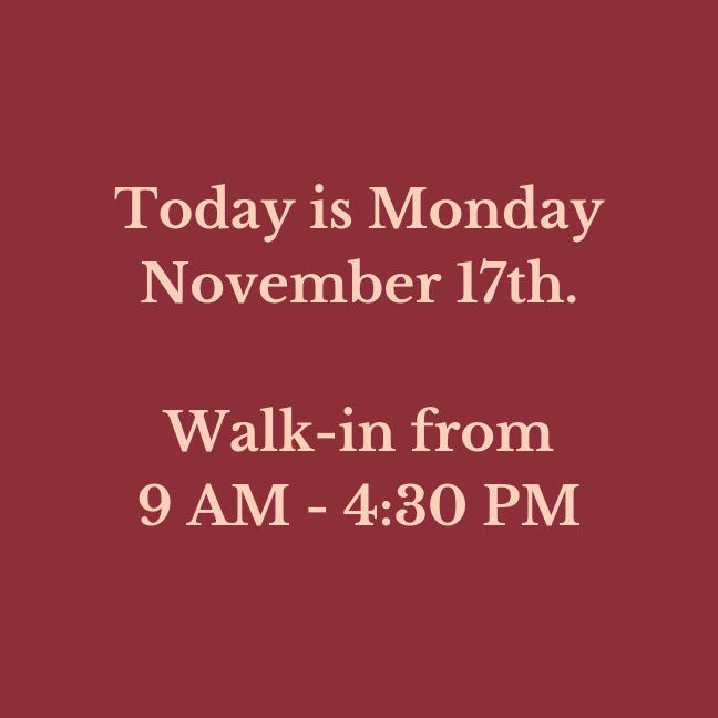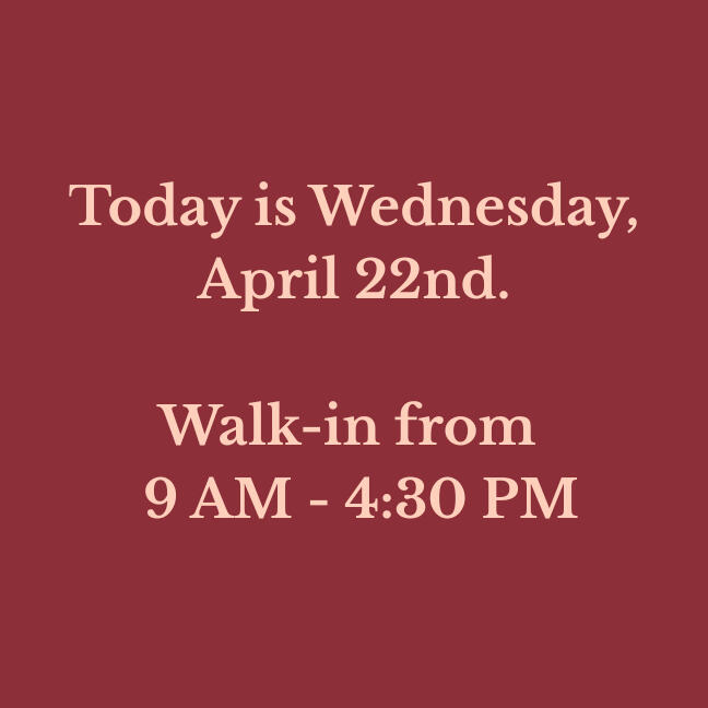 We update our walk-in hours daily. If you are driving a distance, please check to make sure!