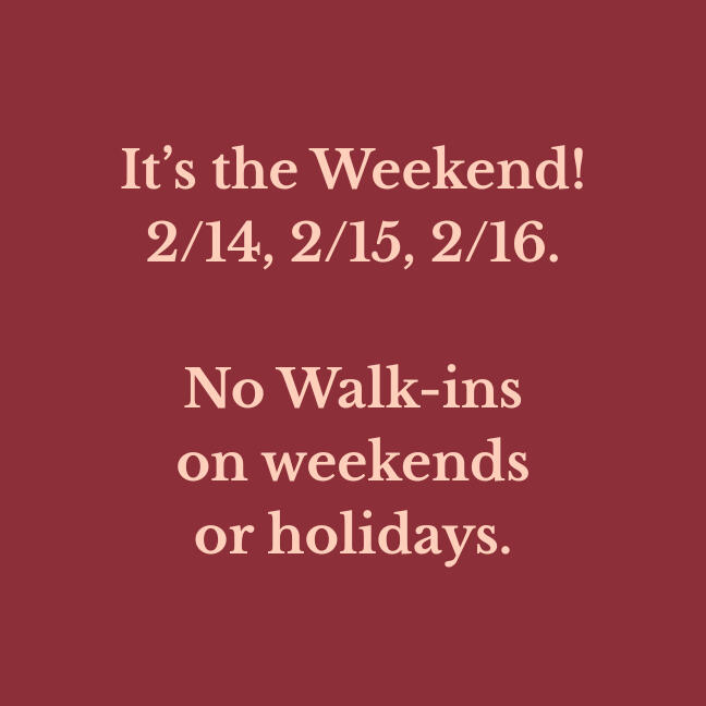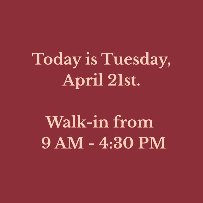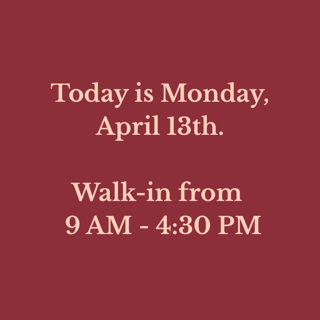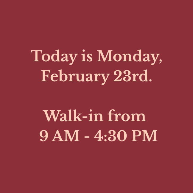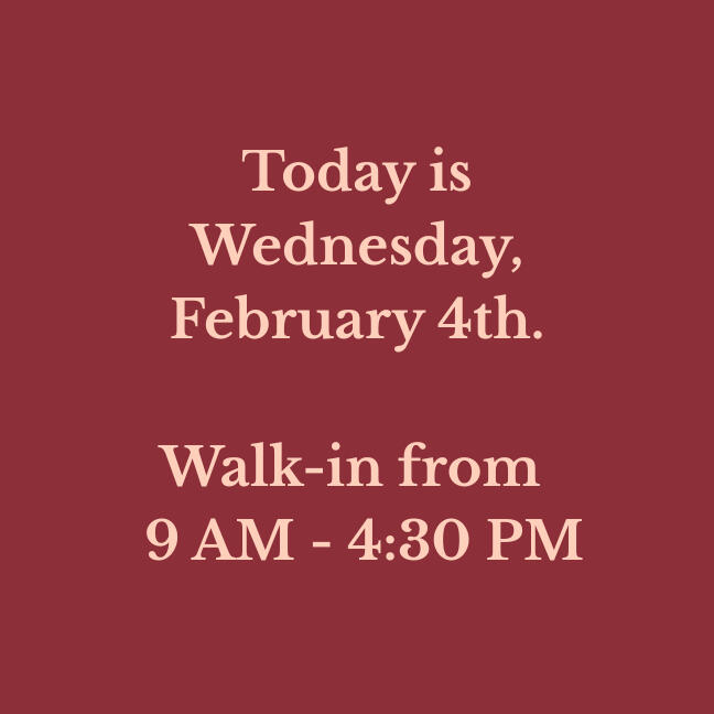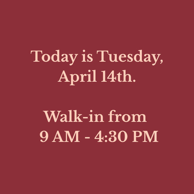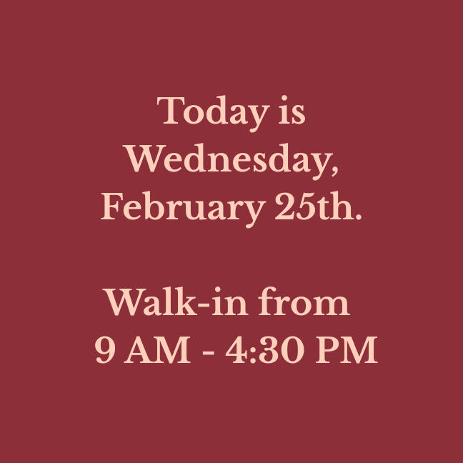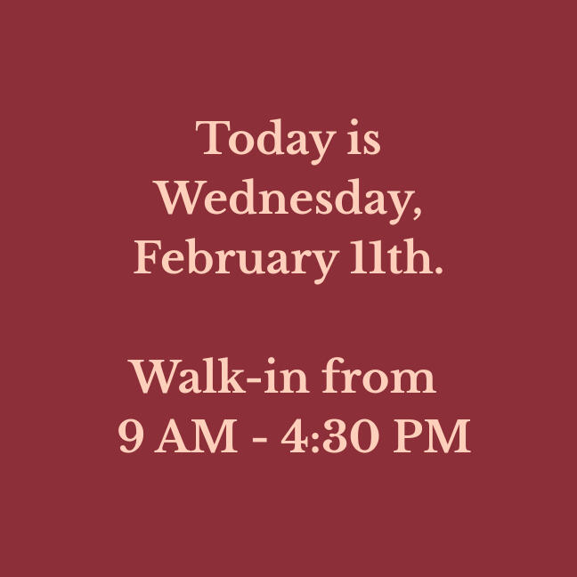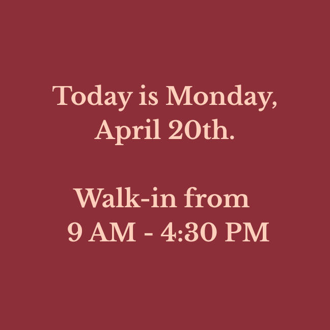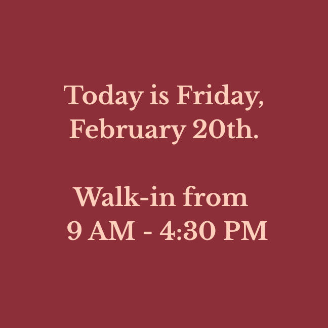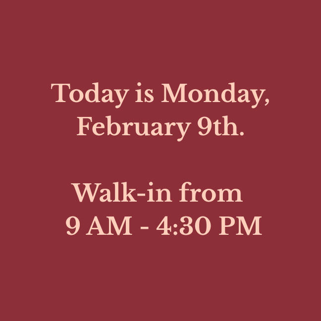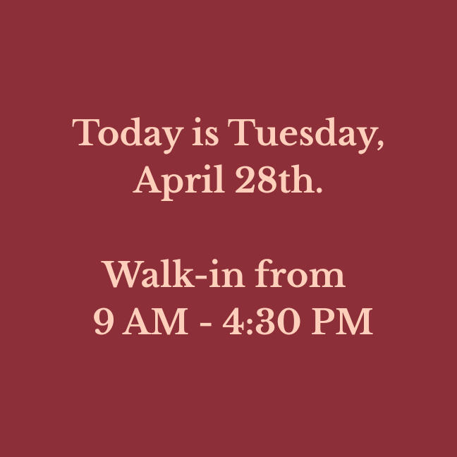 We update our walk-in hours daily. If you are driving a distance, please check to make sure!